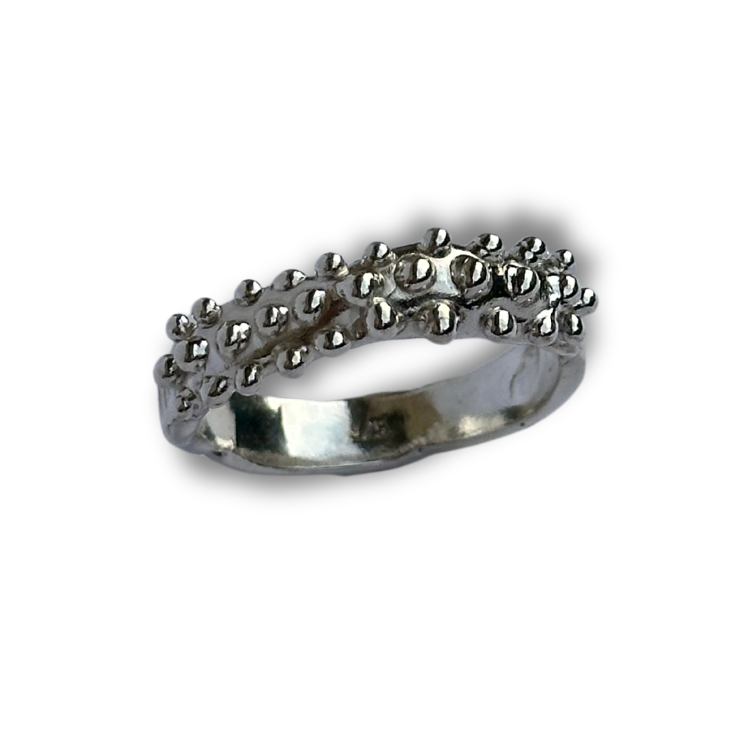 Our Caterpillar ring designs, at their thinnest point, can vary between 4mm and 6mm thick.