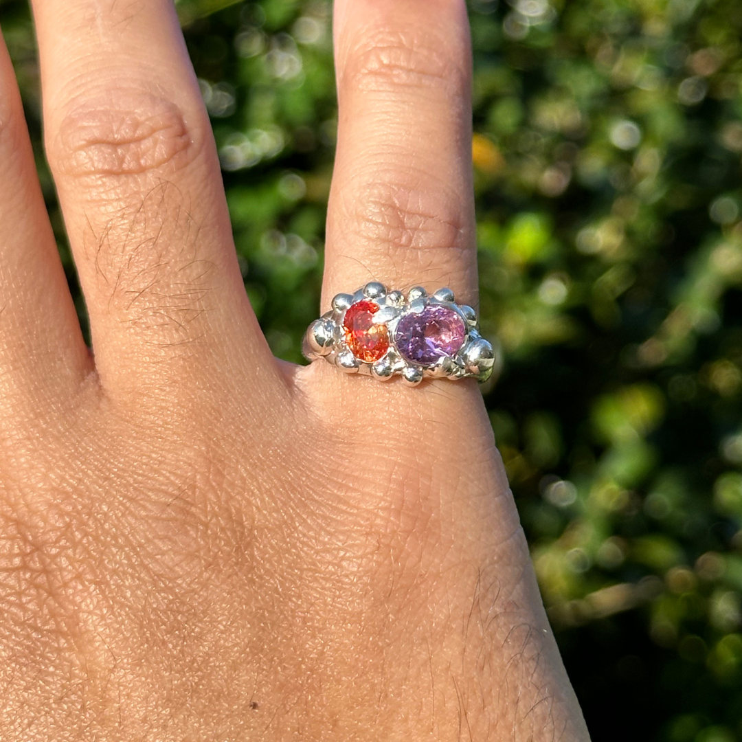 Our Caterpillar ring designs, at their thinnest point, can vary between 4mm and 6mm thick.