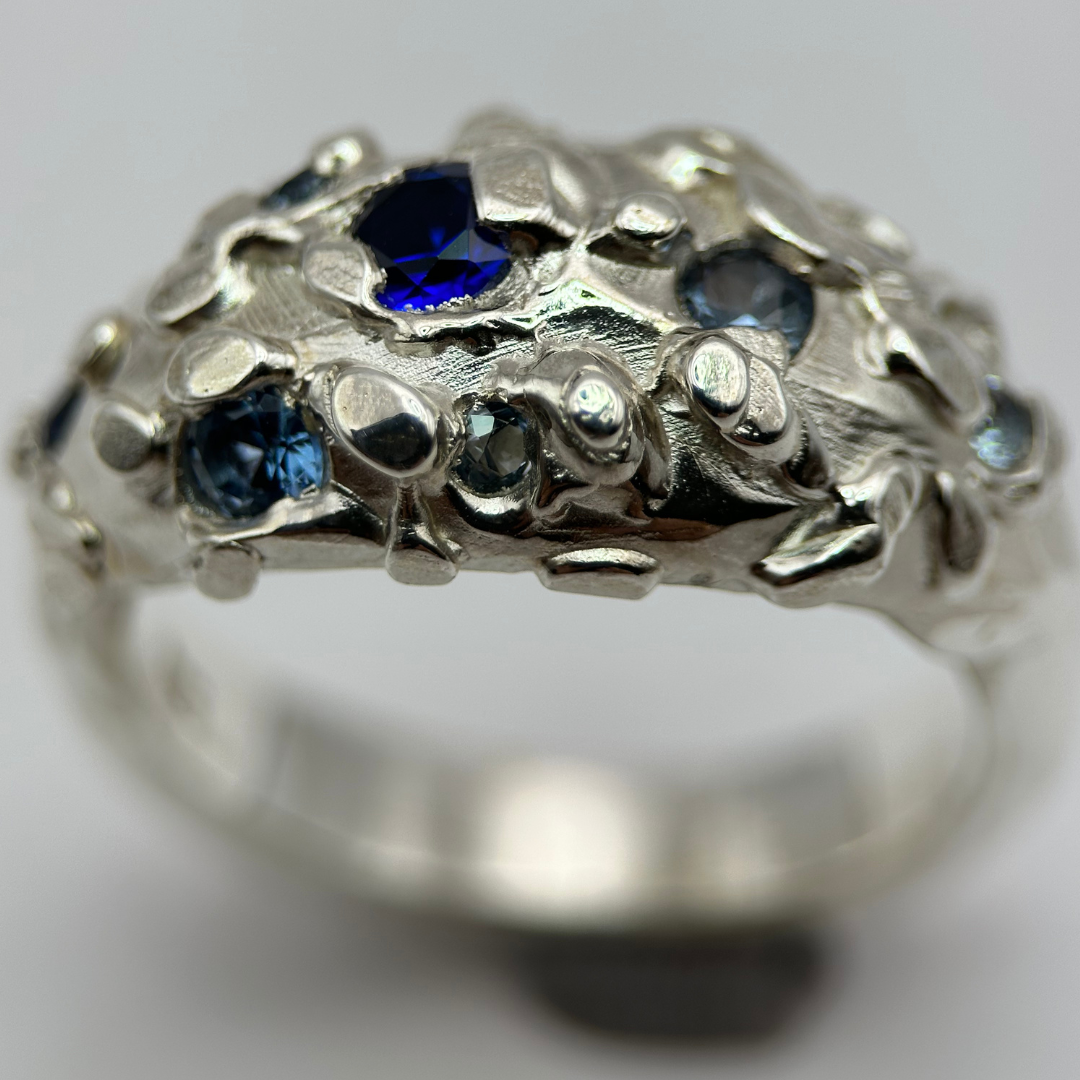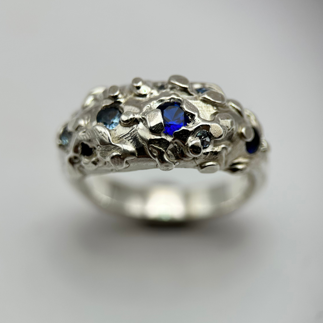 Our Caterpillar ring designs, at their thinnest point, can vary between 4mm and 6mm thick.