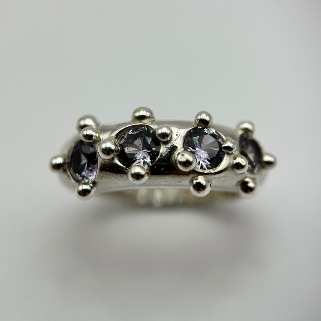 Our Caterpillar ring designs, at their thinnest point, can vary between 4mm and 6mm thick.